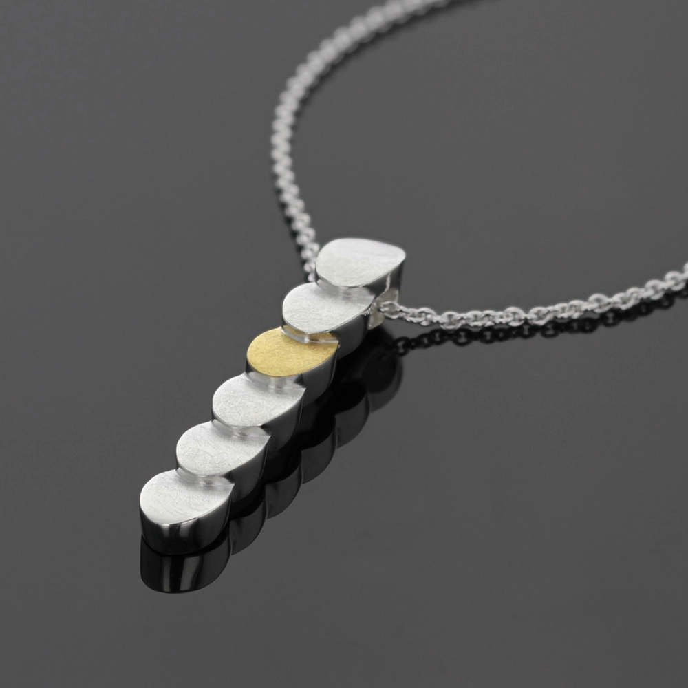 Long and elegant pendant in brushed sterling silver with a yellow gold element.