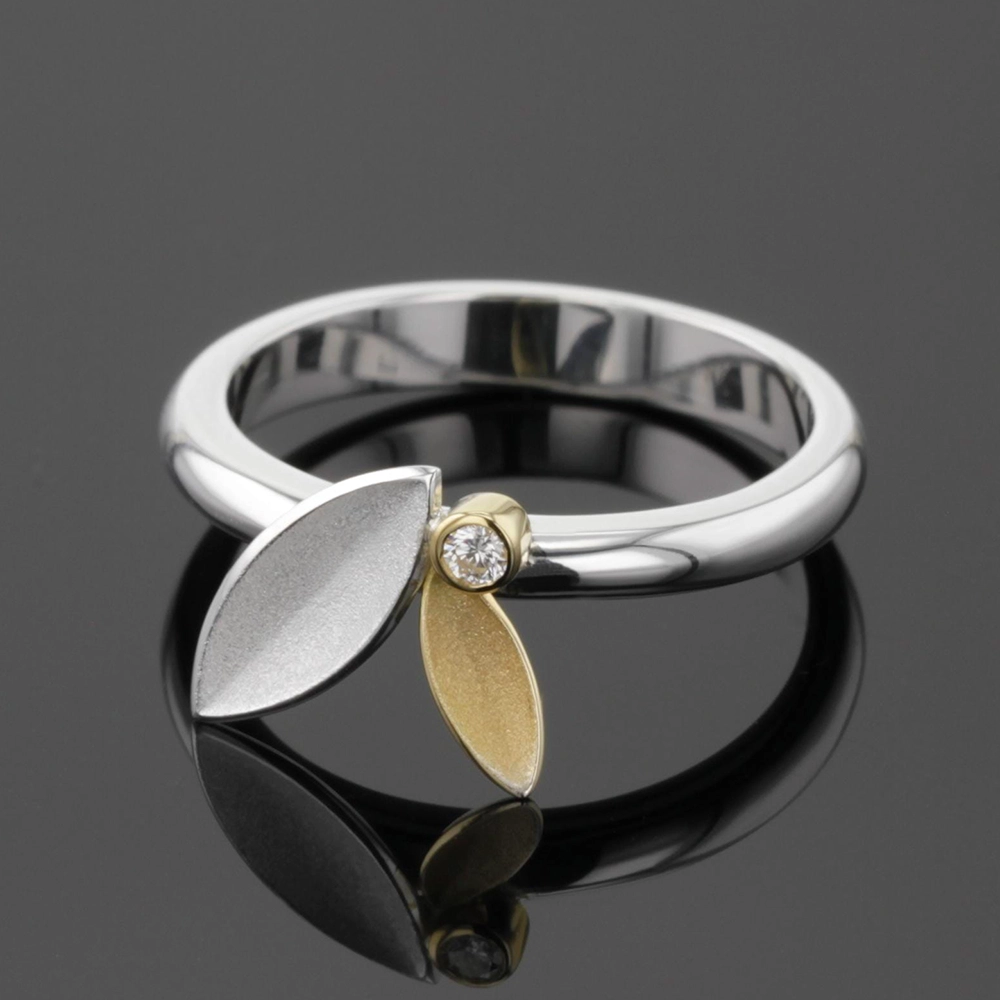 Petite sterling silver ring with an 18ct yellow gold element and diamond.